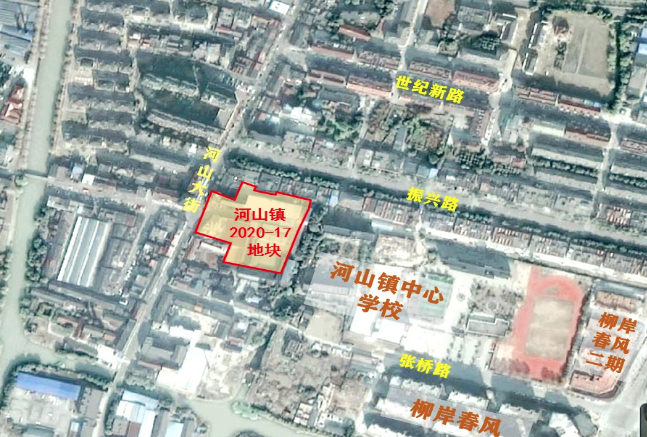 该宗地块位于河山镇,具体位于河山大街东侧,张桥路北侧。地块靠近河山镇镇区核心,东侧为河山镇中心小学,而西侧不远为河山镇集贸市场。河山镇整个镇区并不大,整个镇区以振兴路和河山大街构成的T字型构成镇区主框架,地块可以说处在一个较为不错的位置上。