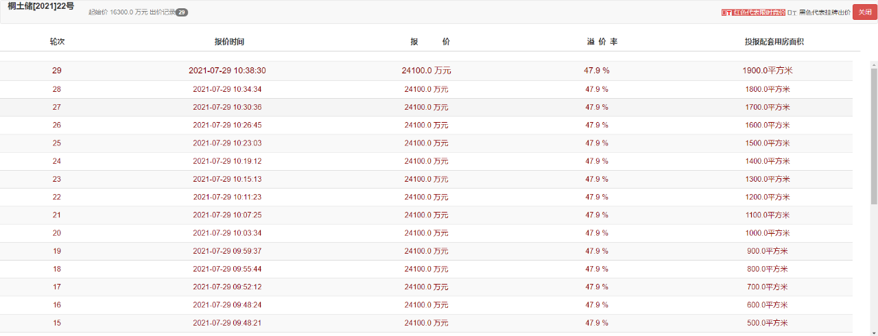 10轮竞价即熔断,迅速进入竞配建阶段,最终经过29轮竞价,以竞配建面积1900㎡成交。
