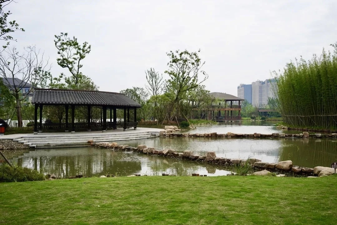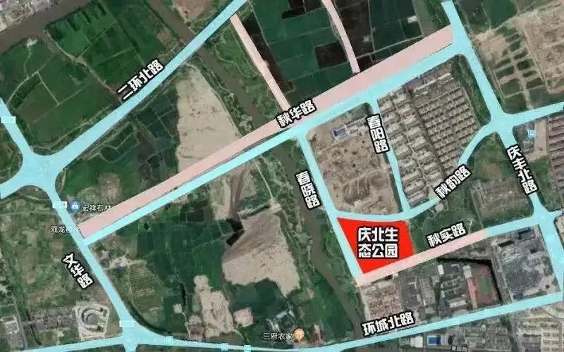 桐乡市庆北生态公园位于庆北区块秋实路北侧、康泾塘东侧、秋韵路南侧。