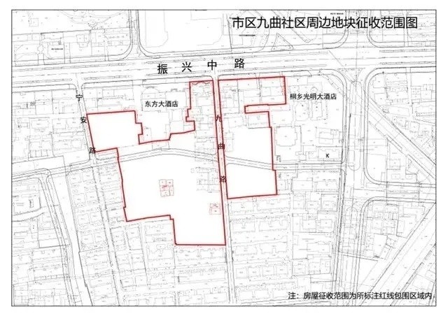 根据《国有土地上房屋征收与补偿条例》和《浙江省国有土地上房屋征收与补偿条例》的规定,现将市区九曲社区周边地块房屋征收范围公告如下: